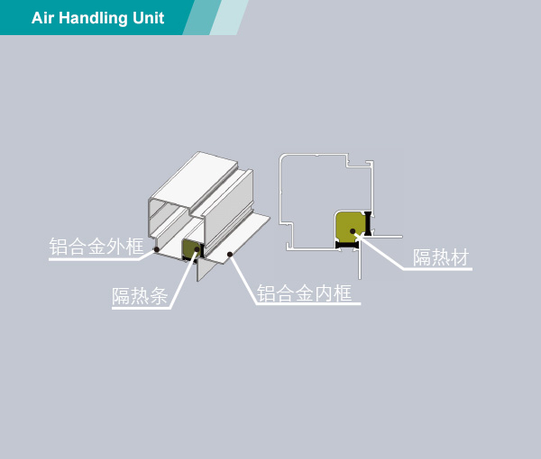 爱游戏新一代MAH组合式空气处理机,艾洛斯(Aiolos)系列,采用防冷桥铝合金框架结构设计,面板与框架为压扣连接方式。